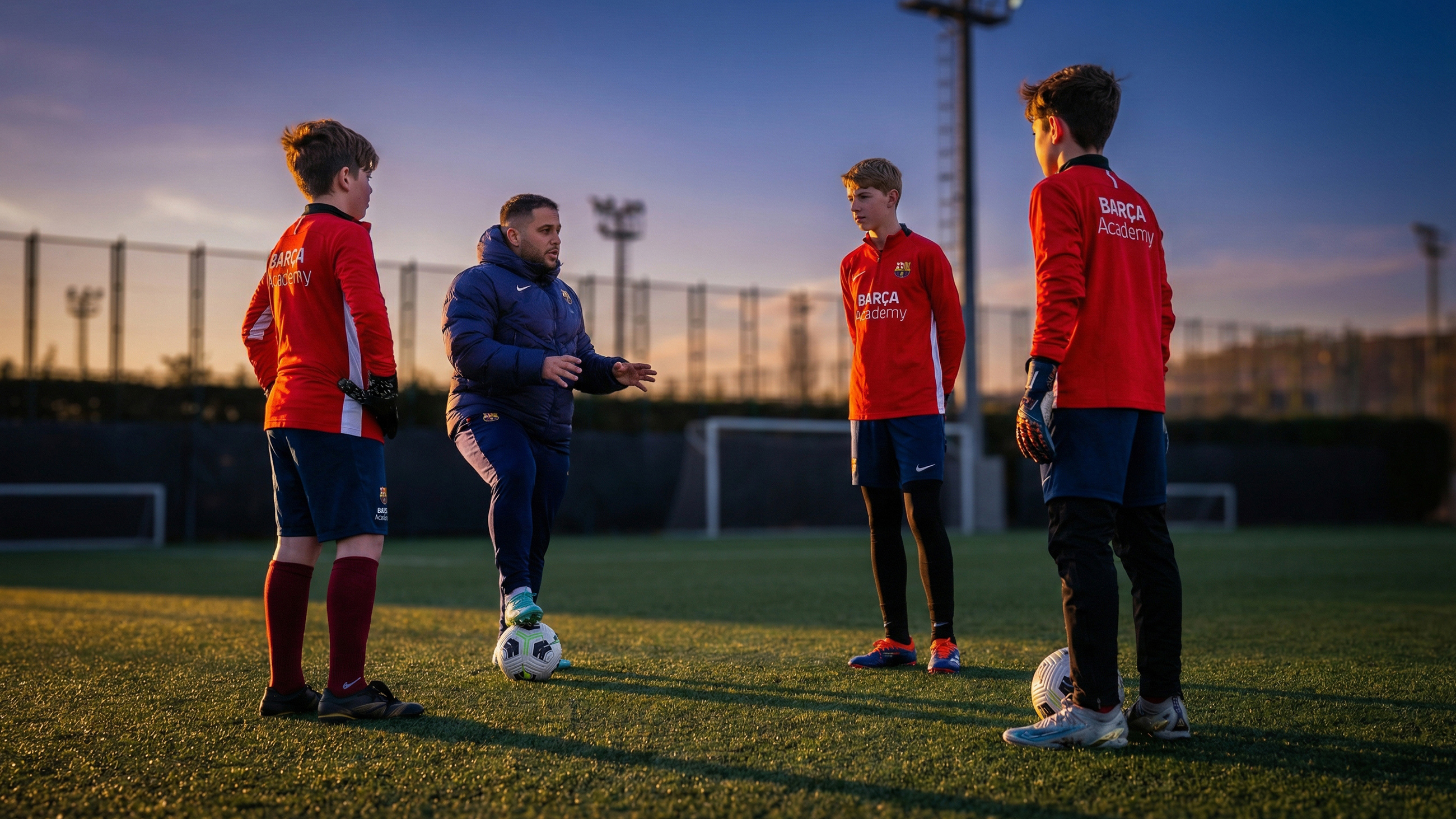 Prepodnevni treninzi bili su u potpunosti usklađeni sa metodologijom FC Barcelone, koja se zasniva na jasnim principima igre, razumevanju prostora i kolektivnoj inteligenciji. Nije se radilo samo na tehničkim elementima, već na sveobuhvatnom pristupu razvoju igrača. Naglasak je bio na kvalitetu prvog dodira, brzini reakcije, preciznosti dodavanja i stalnom kretanju bez lopte. Treneri su kontinuirano usmeravali igrače na donošenje pravovremenih odluka, razvijanje pregleda igre i preuzimanje odgovornosti u različitim fazama utakmice. Svaka vežba imala je svoju jasnu svrhu, a svaki detalj bio je deo šire slike razvoja fudbalske inteligencije.